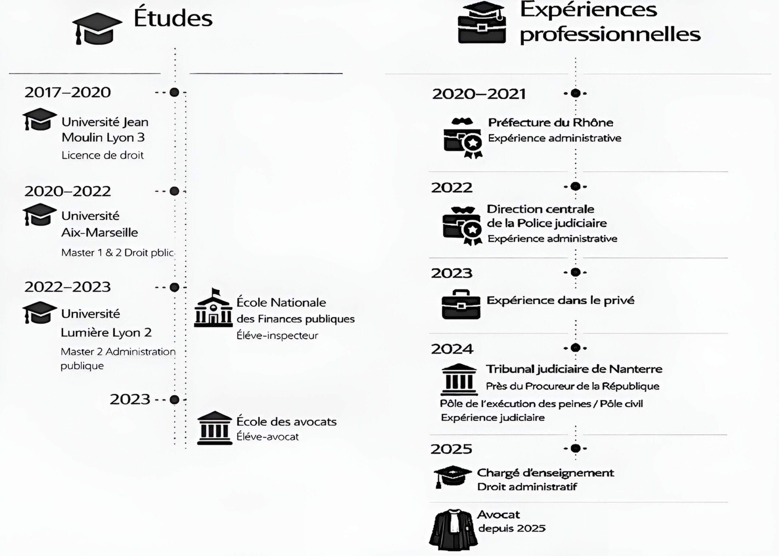 Il a par ailleurs développé une pratique transversale au sein d’un cabinet parisien, ainsi qu’auprès de la Direction centrale de la Police judiciaire et scientifique et de la Préfecture du Rhône, intervenant sur des dossiers de protection des données, de nationalité, de titres de séjour et de décisions administratives individuelles, avec une attention particulière portée aux situations humaines.